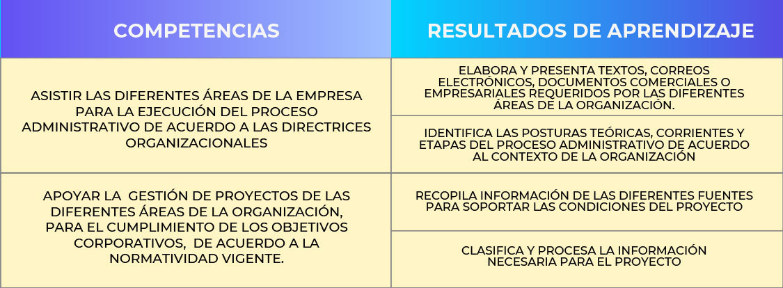 Objetivo del programa: Formar técnicos profesionales en procesos administrativos que brindan asistencia y apoyo a las diferentes áreas de la empresa en cada uno de sus procesos de acuerdo a las directrices organizacionales.