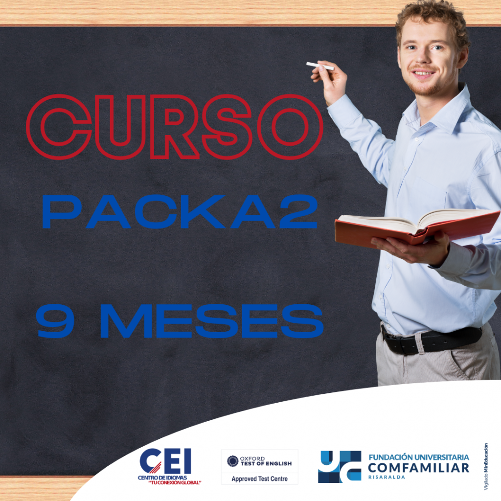 Nuestra oferta académica para el curso Pack A2 brinda la posibilidad a nuestros estudiantes de realizar los cursos con horarios flexibles en semana.                                                             El estudiante recibirá al final del proceso la certificación de competencias del nivel A2 de inglés, esta certificación está avalada bajo resolución de la Secretaría de Educación Municipal de Pereira.