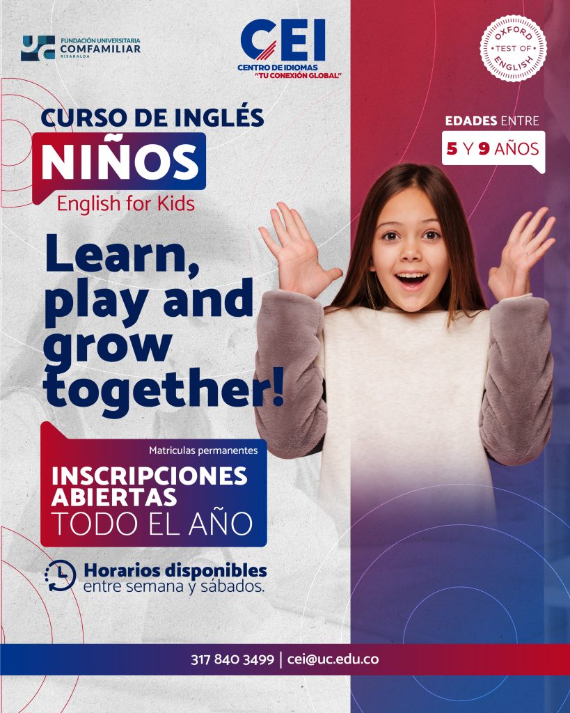 Con la amplia gama de componentes didácticos y digitales con los que cuentan nuestros cursos, que incluyen material bibliográfico, actividades lúdicas, juegos y aplicaciones de última generación para estudiantes y profesores, nuestros cursos están diseñados para enseñar de una manera dinámica y exitosa de forma divertida, donde los niños estarán inmersos en el idioma teniendo en cuenta un aula especialmente ambientada para ellos, donde podrán estar en constante contacto con el idioma inglés simulando diversos contextos reales, lo que los prepara para cualquier escenario de su niñez.